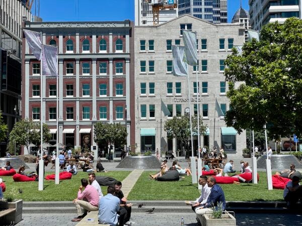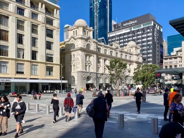 We know this works, because it already is working here. Right now by far the busiest part of Queen St is the new completely car-free Te Komititanga Square, between beautiful Britomart and vibrant Commercial Bay. This completely rebuilt area, along with changing work patterns, is why the pedestrian counts in midtown are down a notch compared to before the pandemic – yet employment numbers are up.