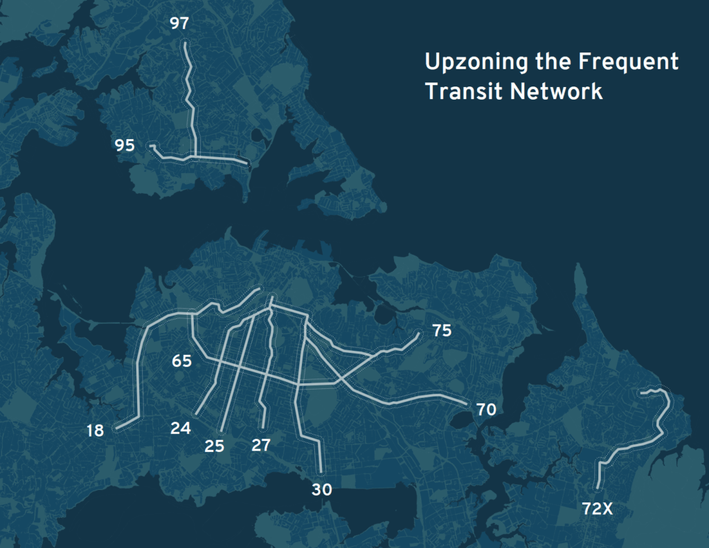 This is mostly the collection of the most popular bus routes, so these make a lot of sense to target as opportunities for intensification.